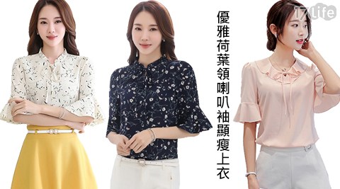【CP值超高】優雅荷葉領喇叭袖顯瘦上衣破盤